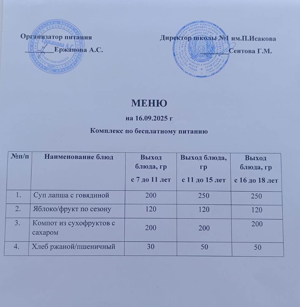 КГУ «Общеобразовательная школа №1 имени Исакова Петра Михайловича, Героя Советского Союза города Акколь отдела образования по Аккольскому району управления образования Акмолинской области»