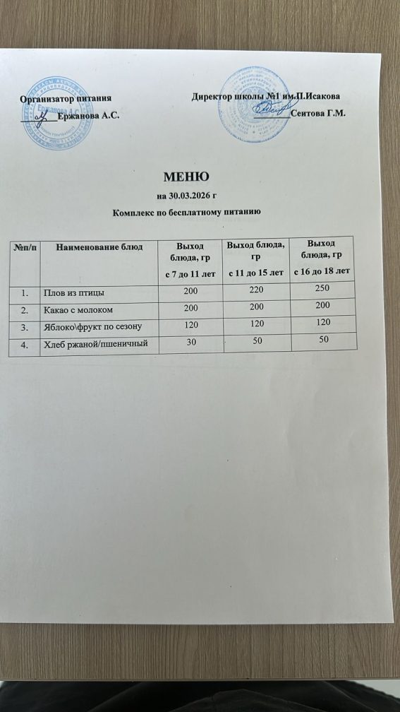 "Ақмола облысы білім басқармасының Ақкөл ауданы  бойынша білім бөлімі Ақкөл қаласының Кеңес Одағының Батыры Петр Михайлович Исаков атындағы №1 жалпы орта білім беретін мектебі" коммуналдық мемлекеттік мекемесіне