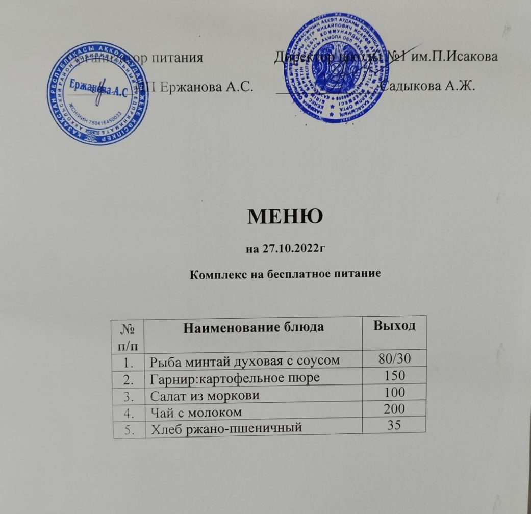 "Ақмола облысы білім басқармасының Ақкөл ауданы  бойынша білім бөлімі Ақкөл қаласының Кеңес Одағының Батыры Петр Михайлович Исаков атындағы №1 жалпы орта білім беретін мектебі" коммуналдық мемлекеттік мекемесіне