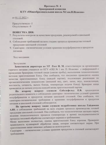 протокол №4 бракеражной комиссии 01.12.2022