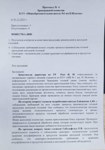 протокол №4 бракеражной комиссии 01.12.2023