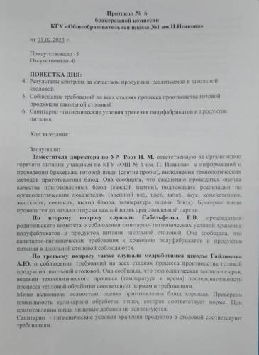 протокол №6 бракеражной комиссии 01.02.2023