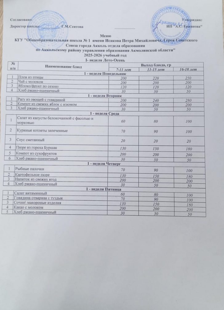 "Ақмола облысы білім басқармасының Ақкөл ауданы  бойынша білім бөлімі Ақкөл қаласының Кеңес Одағының Батыры Петр Михайлович Исаков атындағы №1 жалпы орта білім беретін мектебі" коммуналдық мемлекеттік мекемесіне