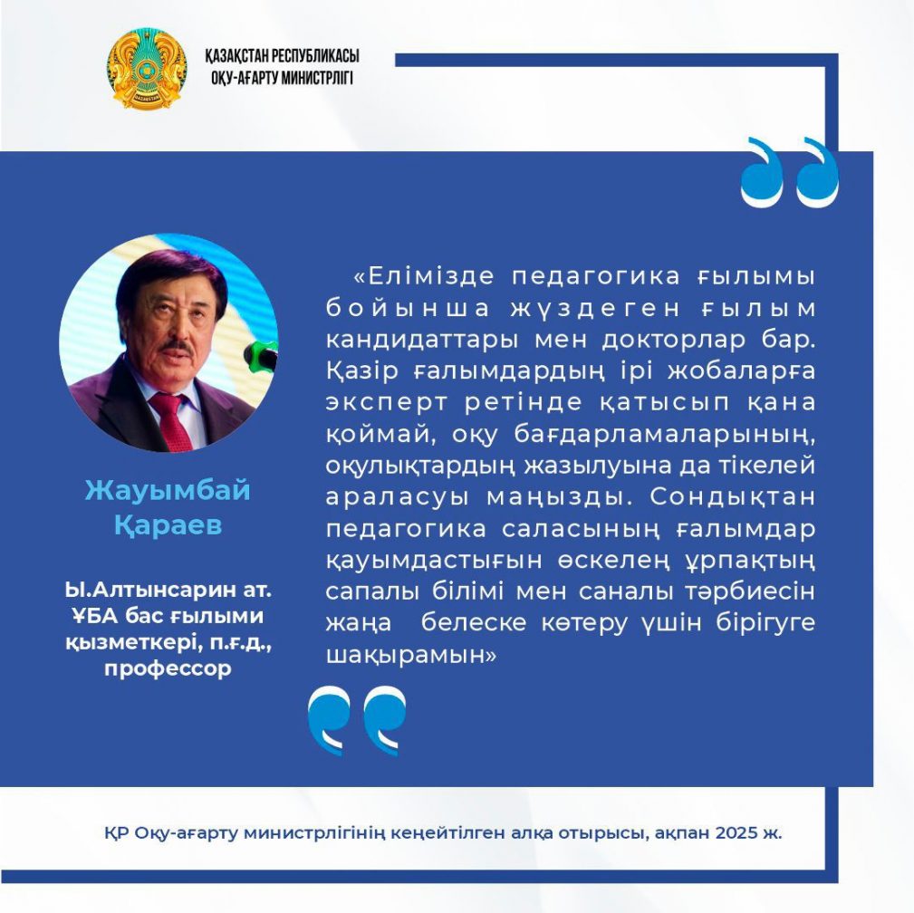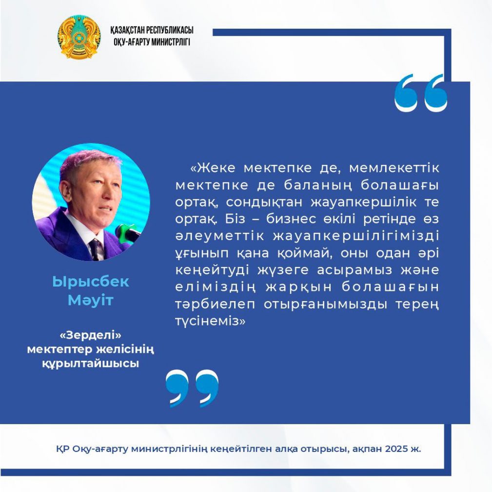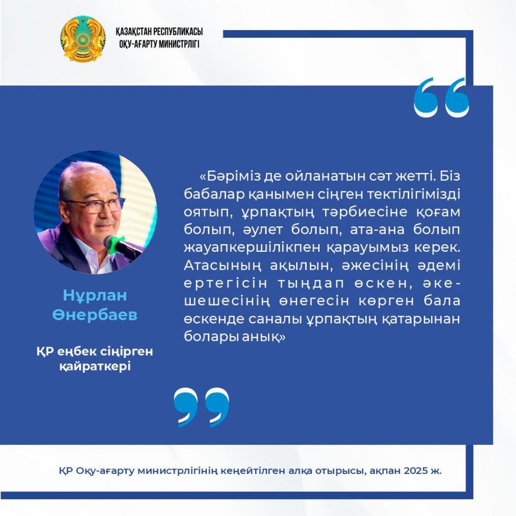 ҚР Оқу- ағарту министрлігінің кеңейтілген алқа отырысындағы спикерлердің сөзінен