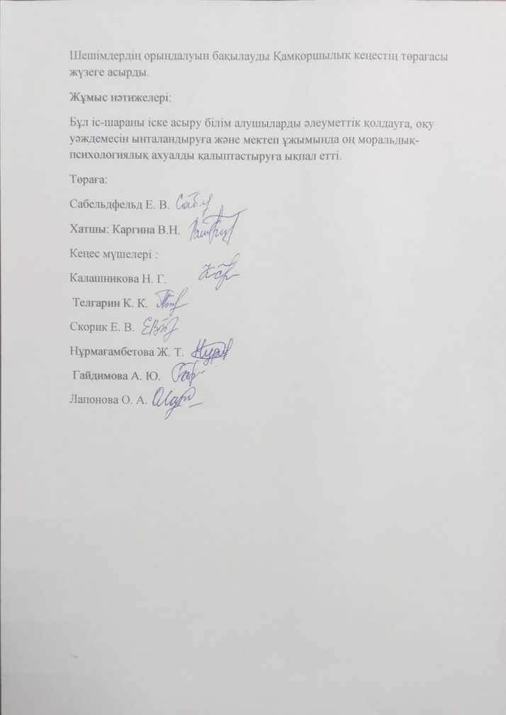 КММ "П.Исаков атындағы №1 ЖББМ" Қамқоршылық кеңесінің IV тоқсанға арналған отырысының хаттамасы.